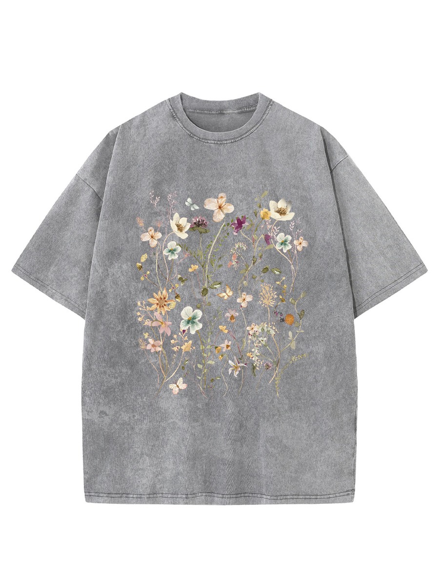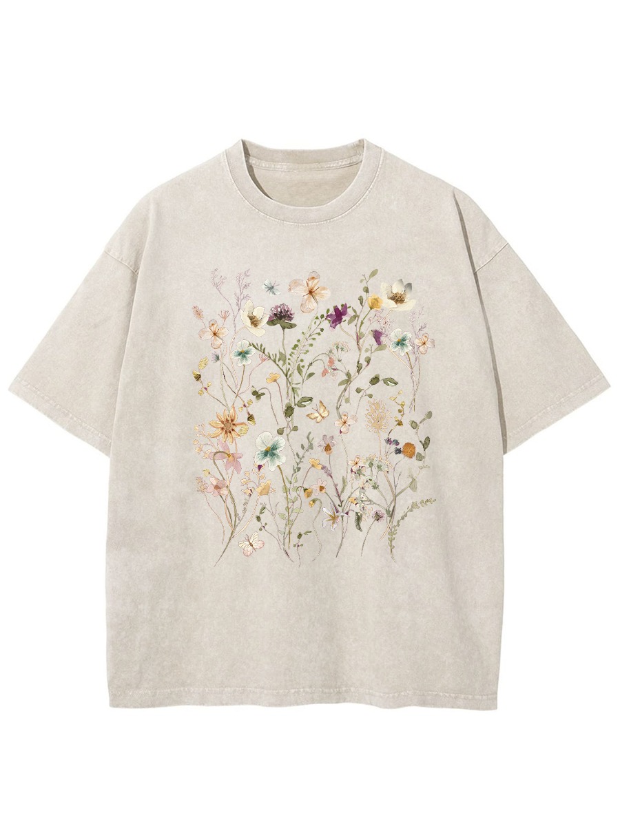 Plus Size Boho Wildflowers Cottagecore Washed T-Shirt: Meet Your Trendy