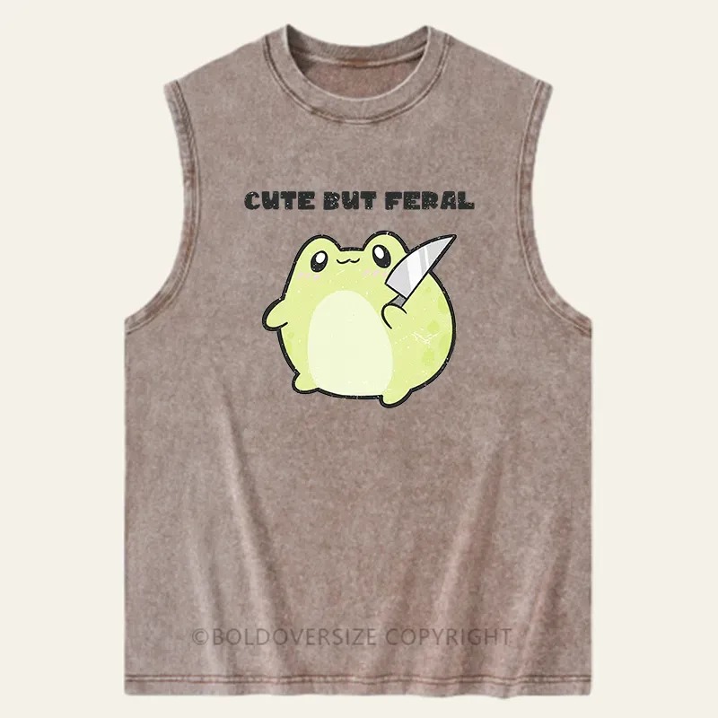 Adorable meets edgy with this lime green frog graphic holding a knife. Yes, you read that right—a knife. The “Cute But Feral” text adds a cheeky twist, making this tank an instant favorite for anyone who loves a little mischief.