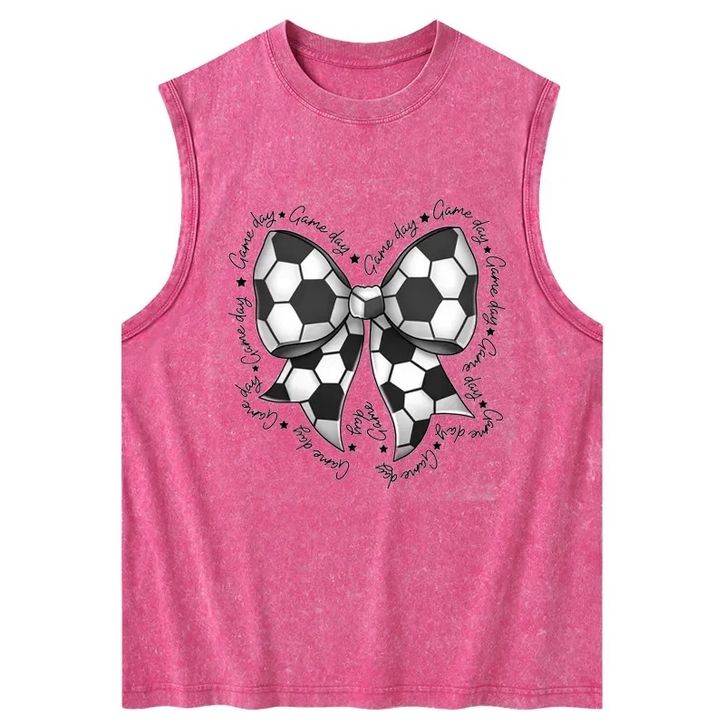 Who said sporty can’t be cute? This bright pink tank features a playful bow made of soccer balls, surrounded by the words “Game Day” in a fun, swirly font. Whether you’re a soccer mom, a fan, or just love unique designs, this tank is a win-win.